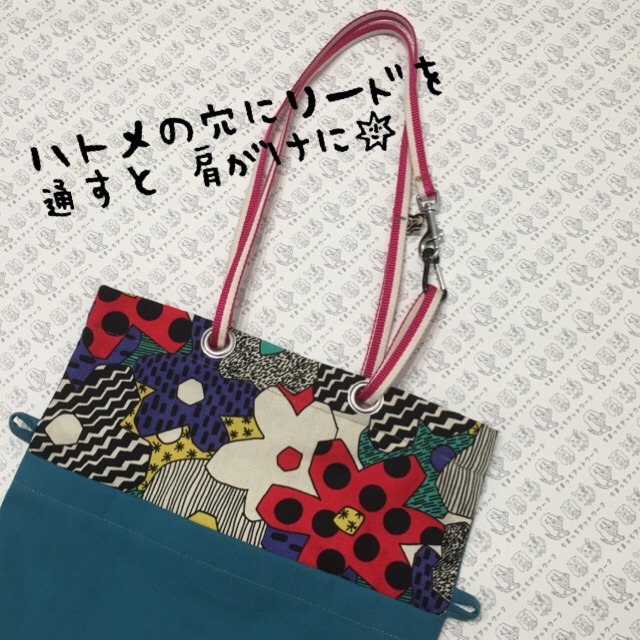 それを活かさない手はありません⭐︎ ハトメの穴(直径12ミリ)にリードを通してひもに仕立てると、まぁ、ちょうど良い。